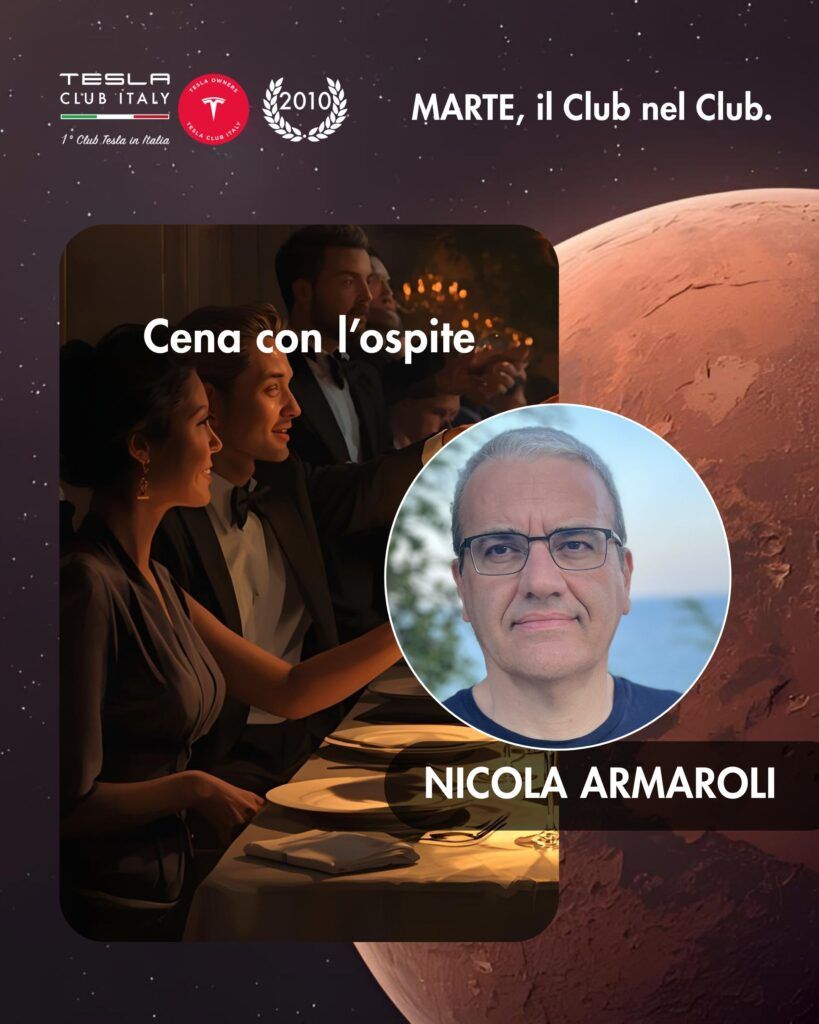 Iscriviti a MARTE, il “Club nel Club,” una piattaforma riservata con eventi esclusivi, webinar e workshop per la tua formazione su Tesla e sull’elettrico, gruppi di discussione e di supporto, cene con personalità importanti e tanto altro. Lontano dal caos dei grandi gruppi Telegram o Facebook, MARTE è uno spazio esclusivo, curato e riservato, dove il confronto è davvero sempre utile.